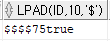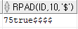 - lpad(id,10,'$') : id가 몇자리이든 총 10자리가 되게 왼쪽으로 $로 붙인다.