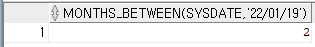 select months_between(sysdate,'22/01/19') from dual; -- sysdate = 현재날짜 (22/03/19)